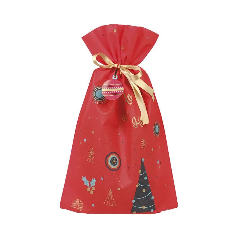 Полипропиленова торбичка "CHRISTMAS MOSAIC" зелено/червено със златна сатенена панделка, 33.0 x 55.0 cm, SC096P